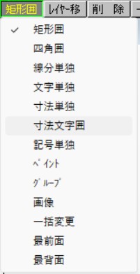 寸法文字囲 をクリックして、囲った範囲の寸法文字レイヤーの変更もできます。